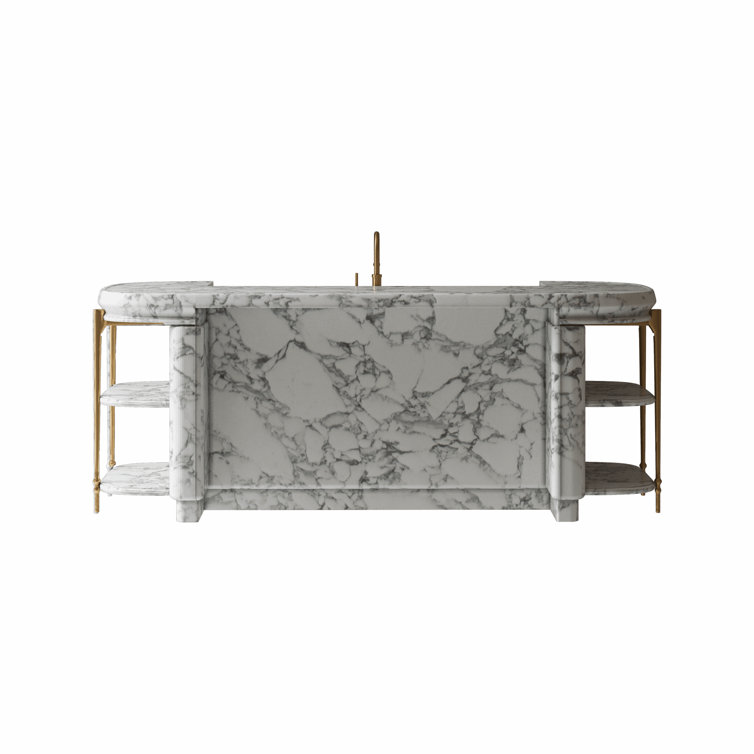 Inspired by the bold, rounded geometry and sculptural elegance of the Capella Family, the Capella Center Bar is a commanding centerpiece for any room. Defined by rolling curves and graceful lines, this carved stone bar achieves an effortless visual lightness—a true study in poetry in motion.