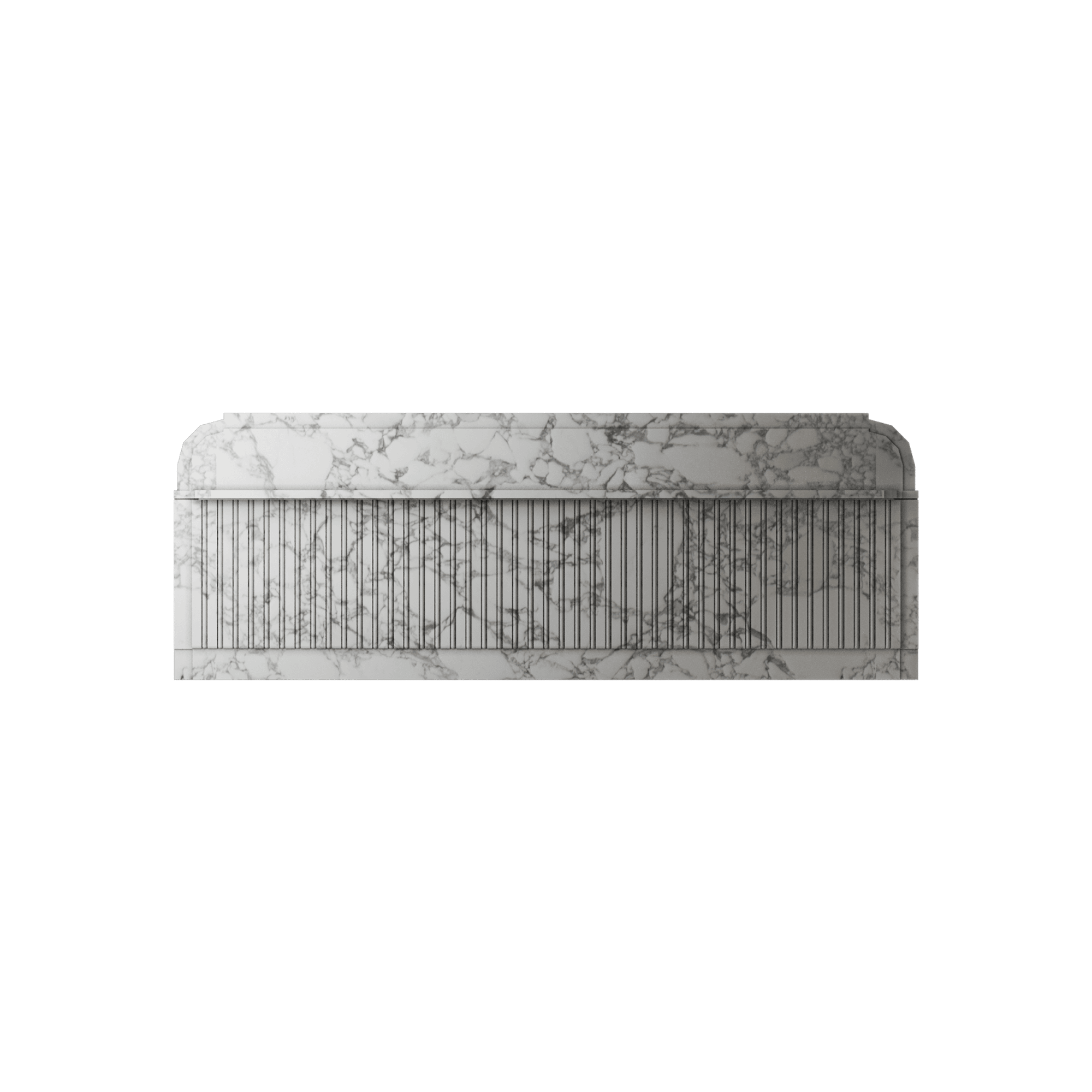 Rhythmic fluting and reeding give the Hamilton Backsplash the formal elegance of a classical frieze. This backsplash includes a four-inch-deep shelf and an option for an arched header that gracefully adds both height and charm – the perfect touch in a butler’s pantry or show kitchen.
